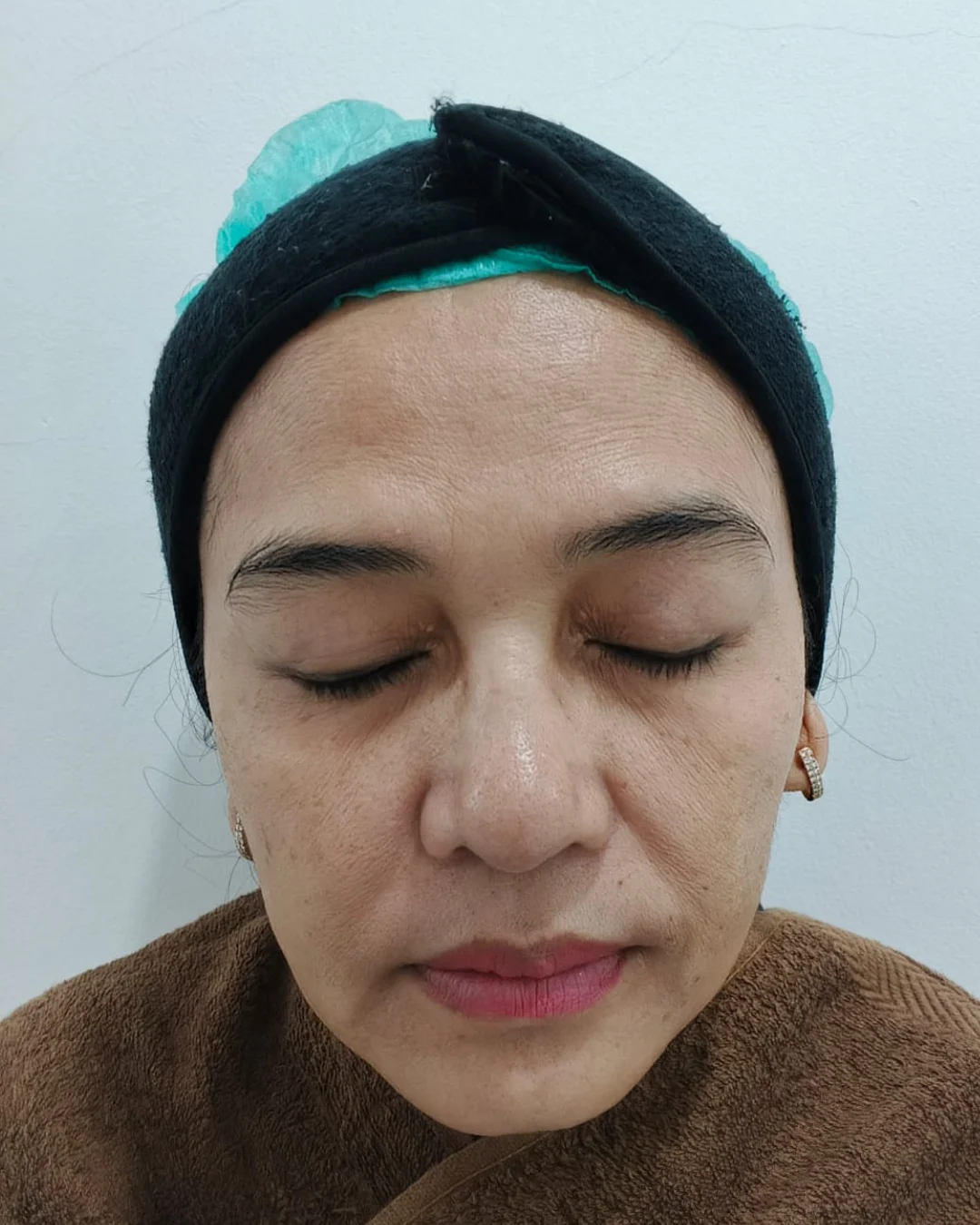 Mulai merasa kulit kendur di area pipi atau jawline, serta garis senyum yang makin dalam.